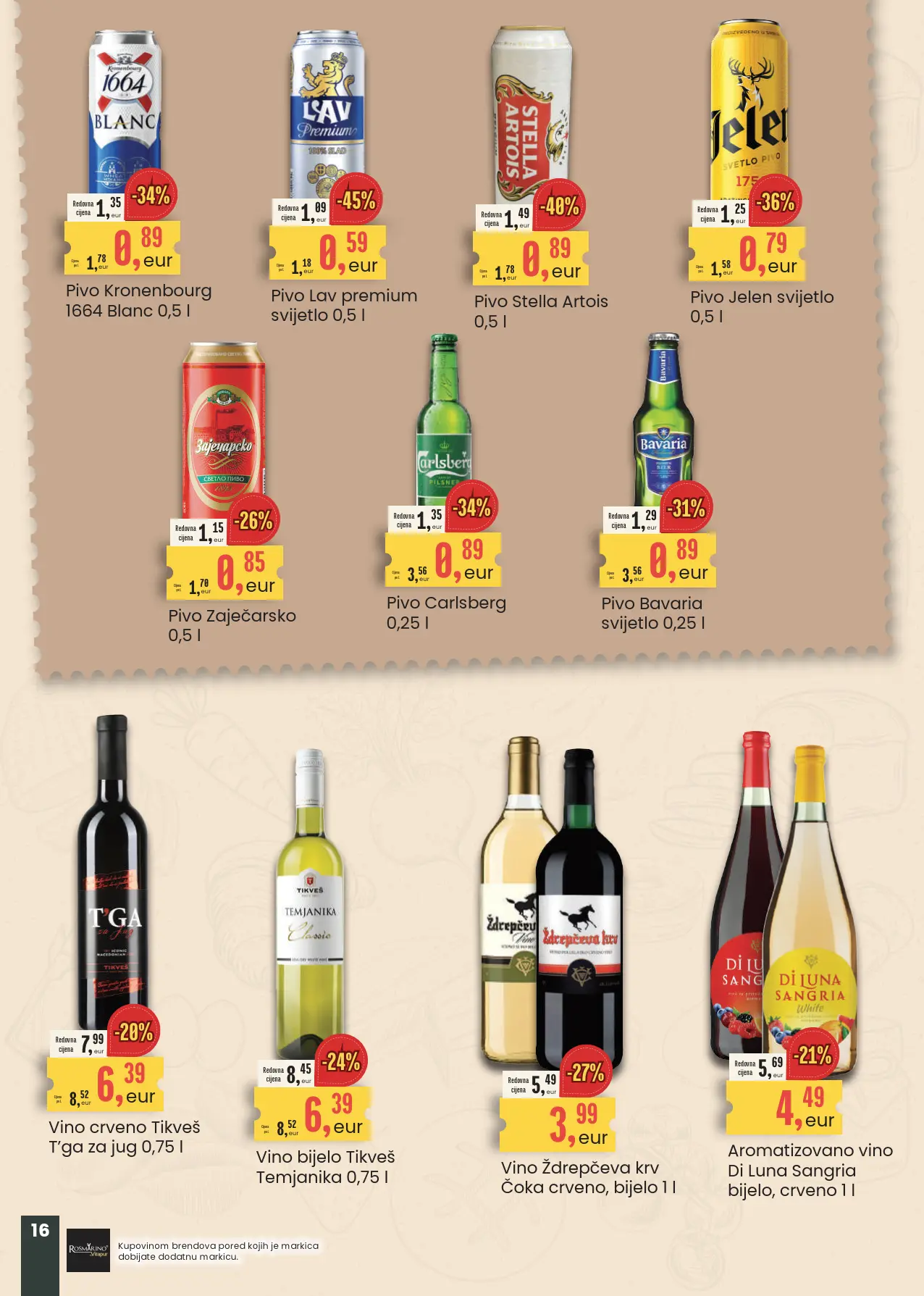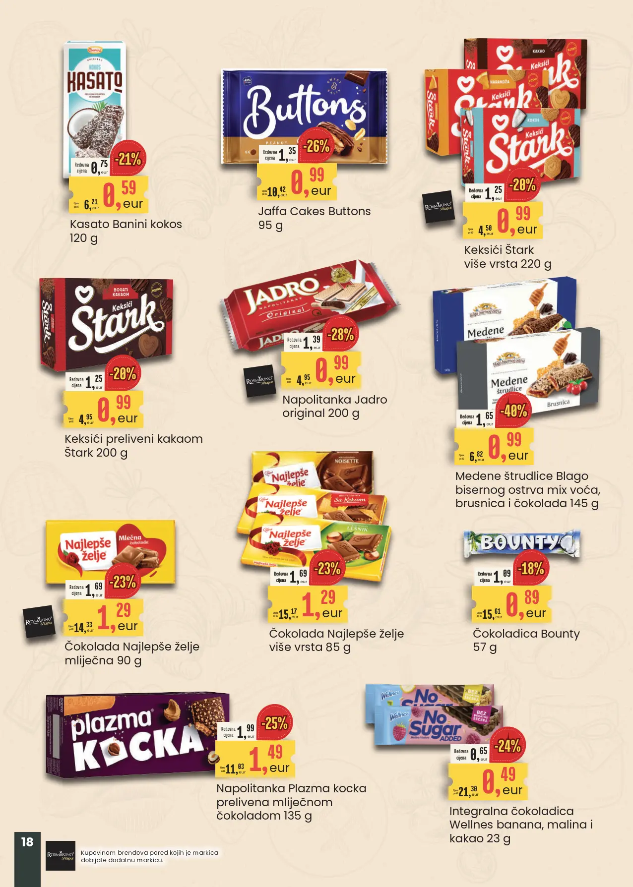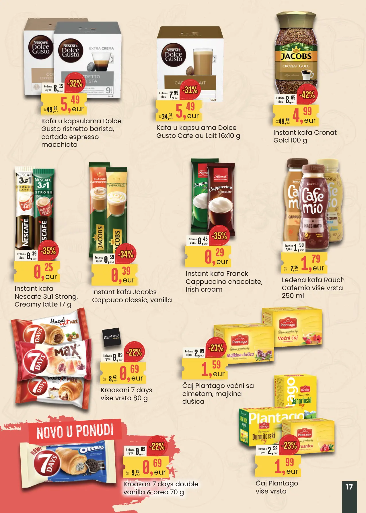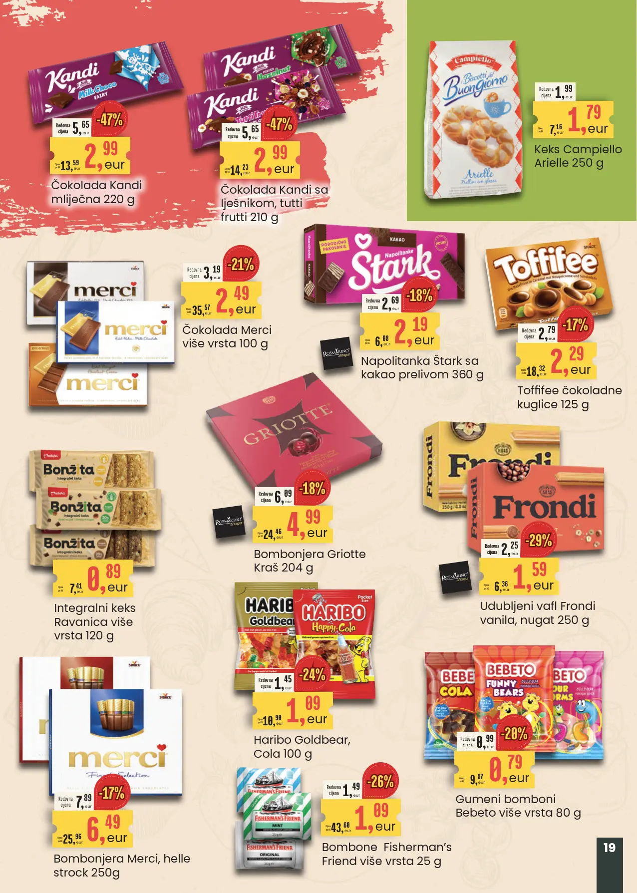Katalog obuhvata i raznovrsne slatkiše, grickalice, kafu i osvježavajuće napitke, dok posebna odjeljenja nude vina, piva i premium proizvode renomiranih brendova. Tu su i praktični proizvodi za higijenu, njegu i održavanje doma.