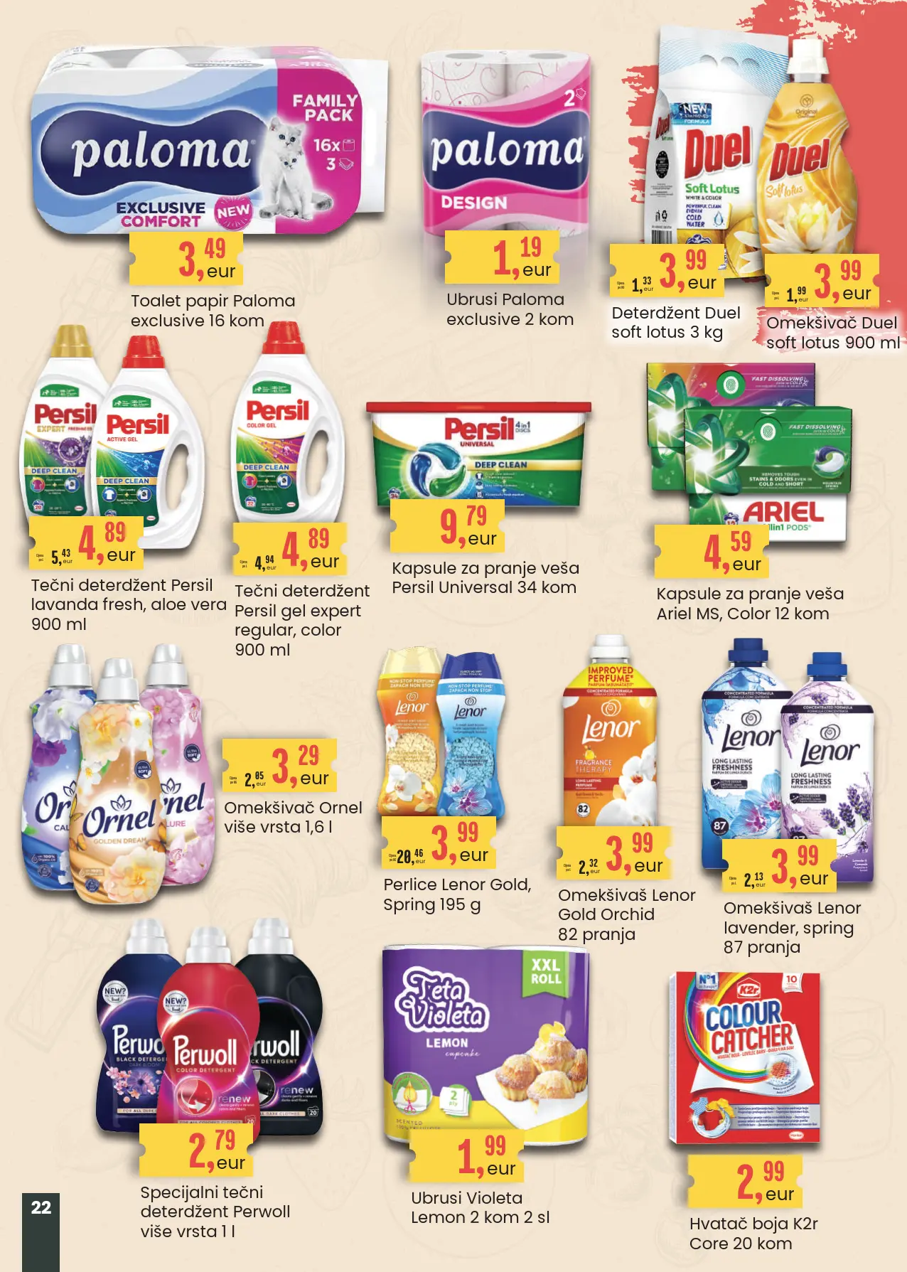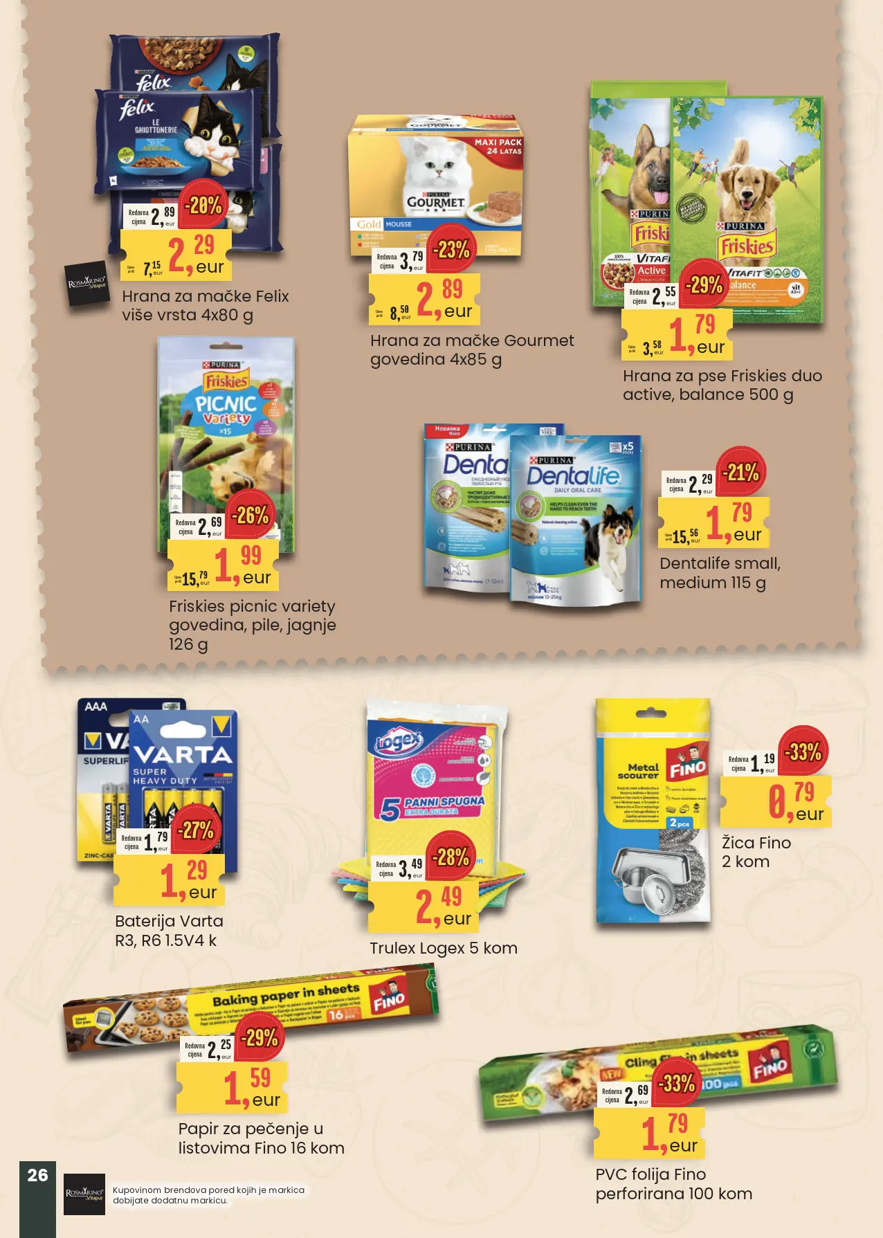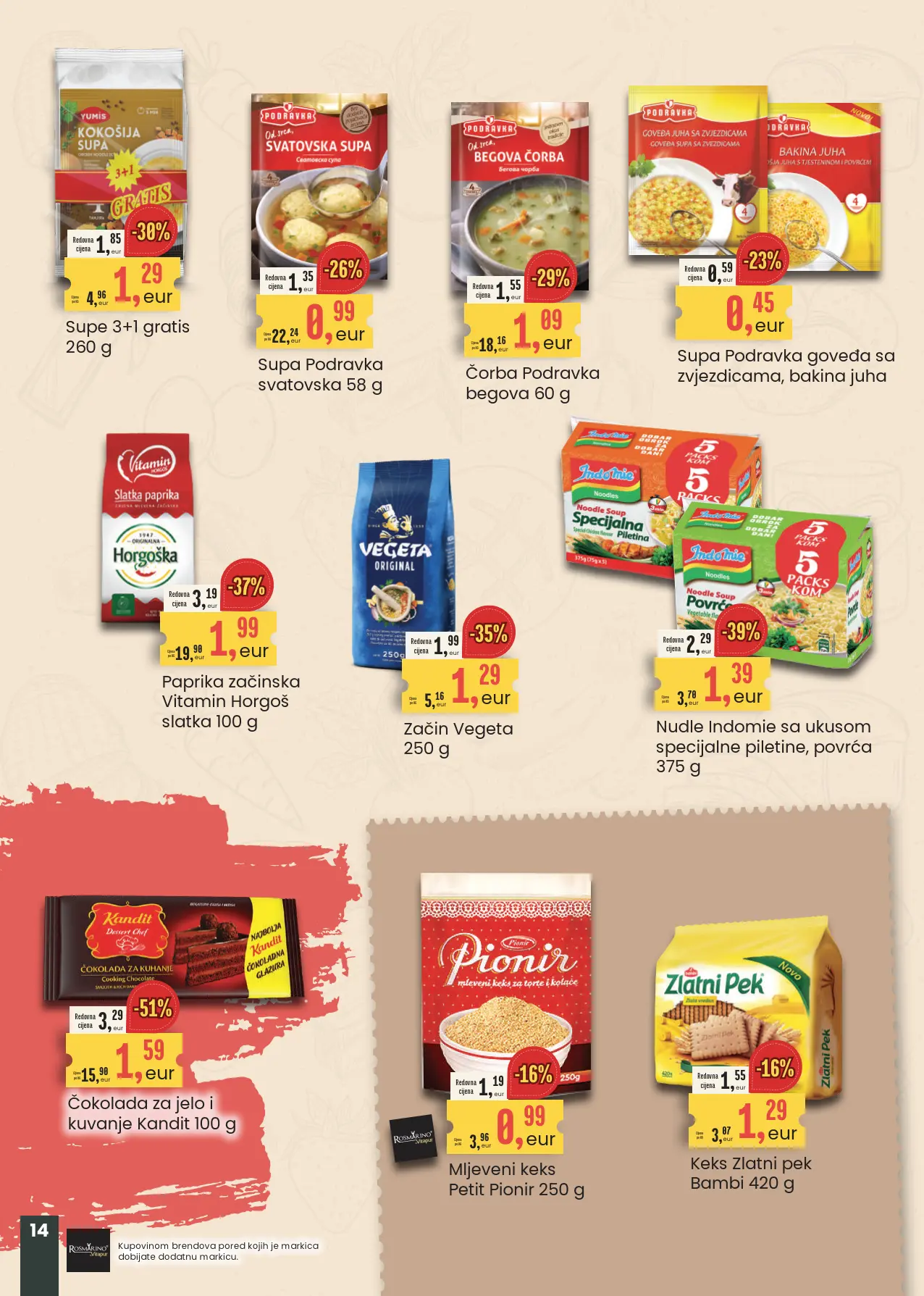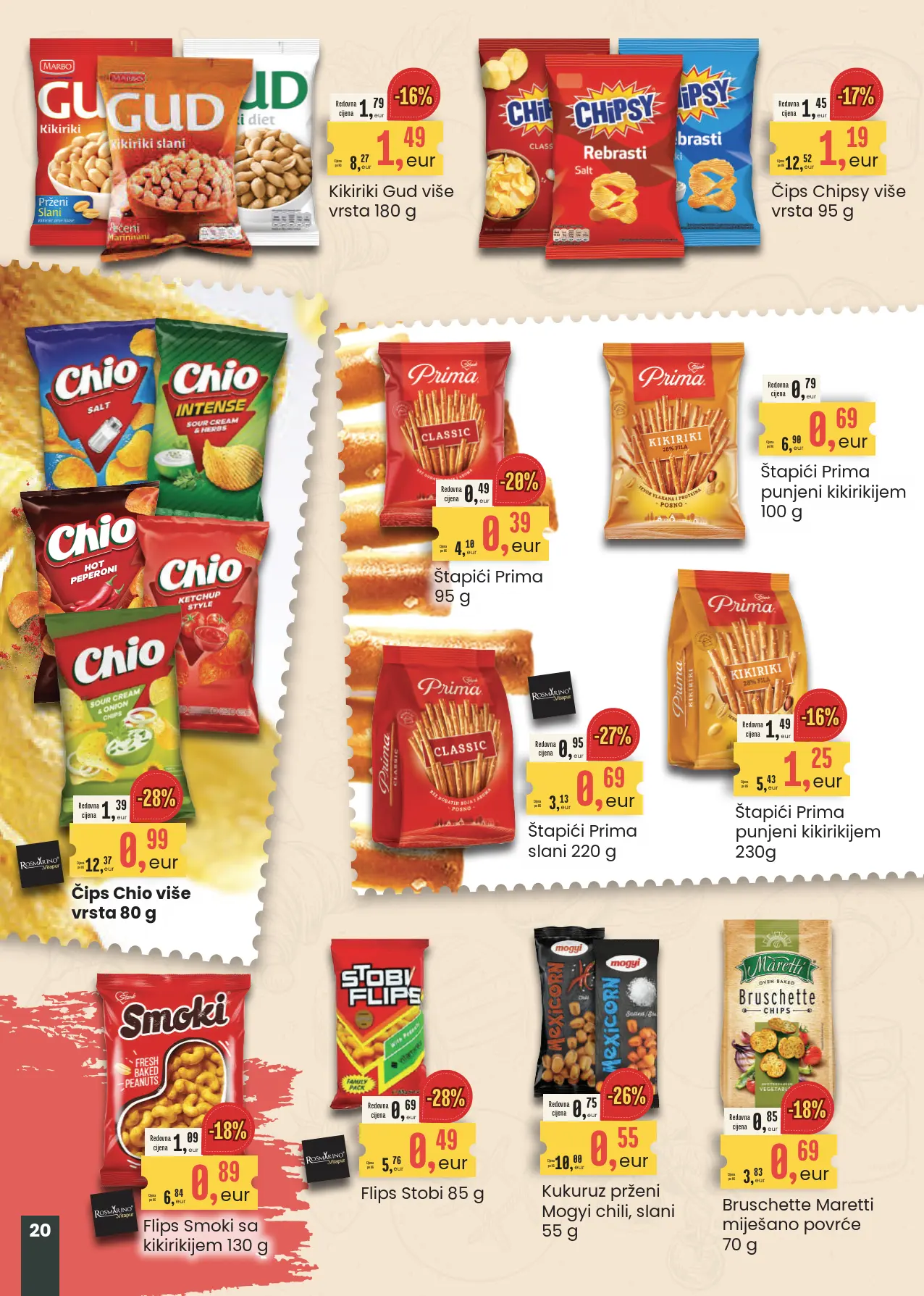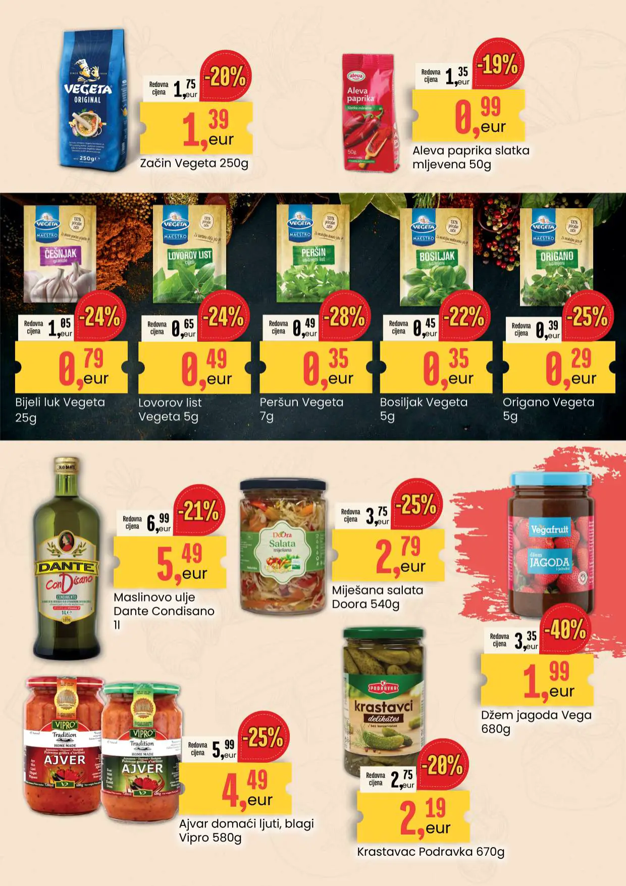 Katalog obuhvata i raznovrsne slatkiše, grickalice, kafu i osvježavajuće napitke, dok posebna odjeljenja nude vina, piva i premium proizvode renomiranih brendova. Tu su i praktični proizvodi za higijenu, njegu i održavanje doma.