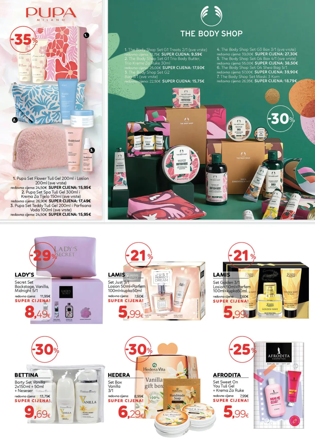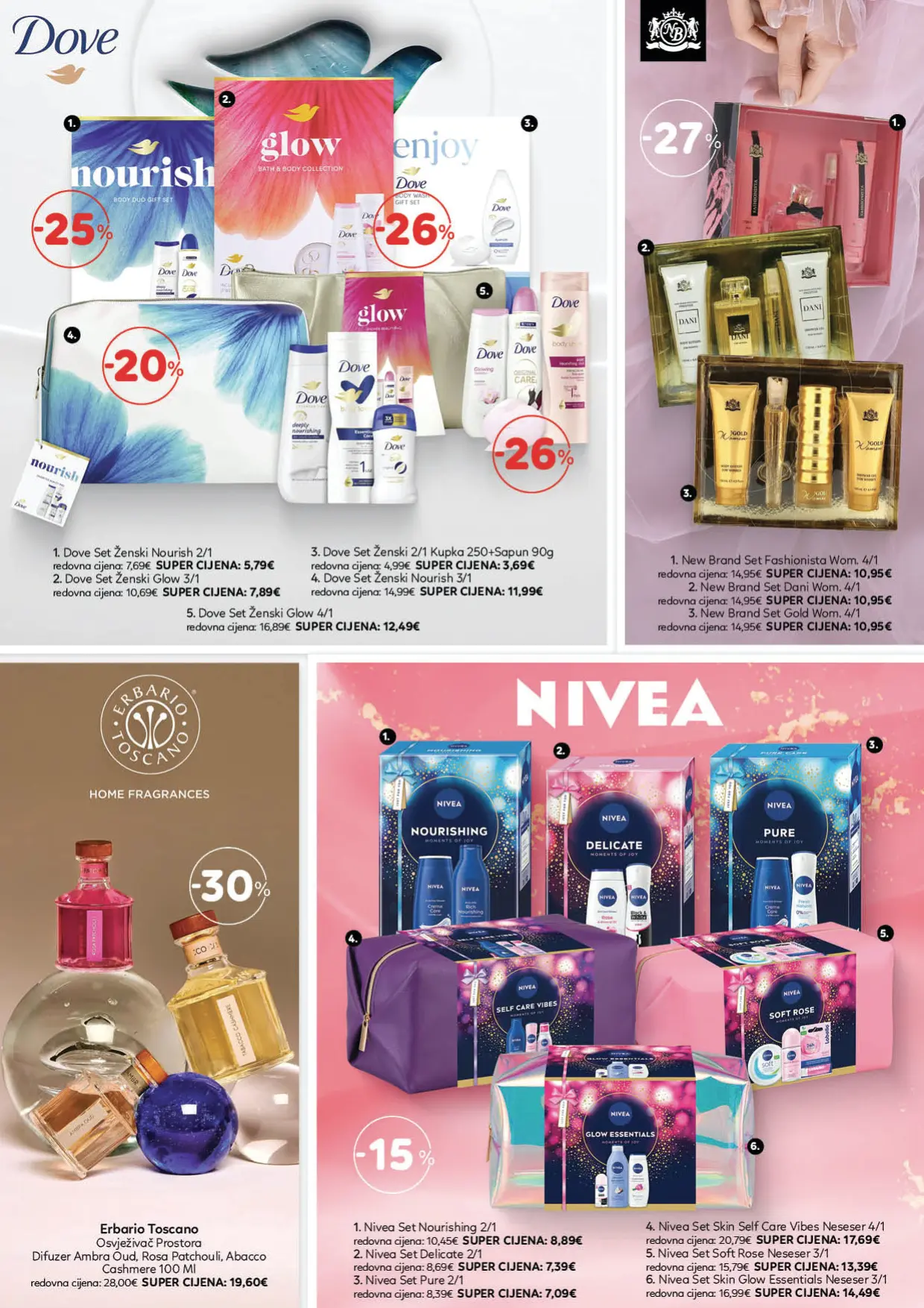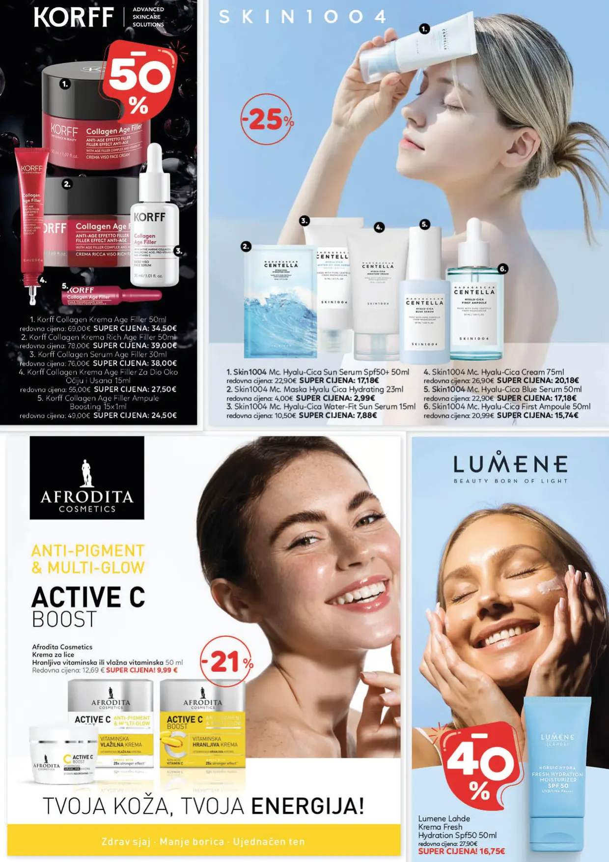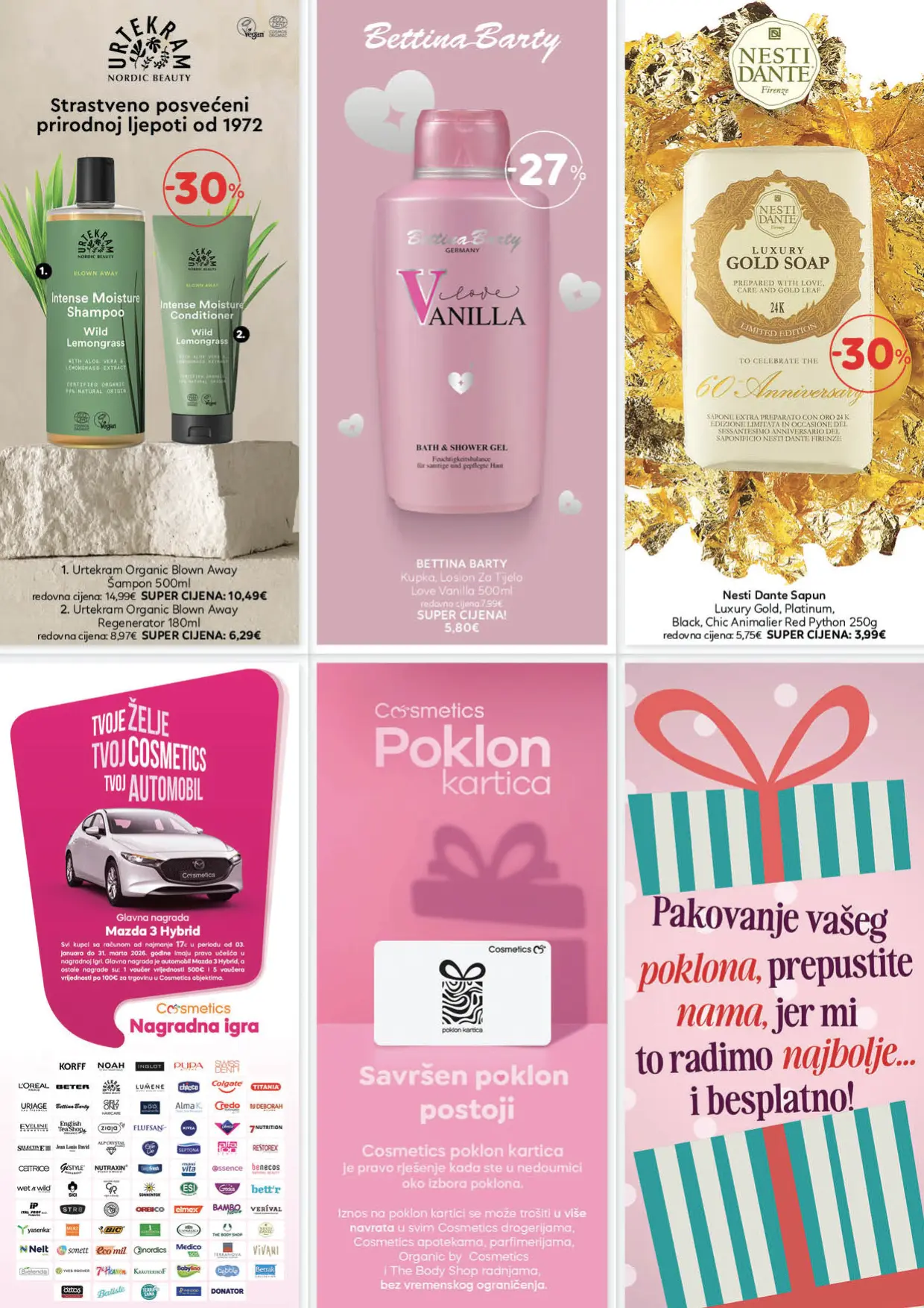 Katalog Cosmetics donosi najnoviju ponudu proizvoda iz oblasti ljepote, njege i higijene, pažljivo odabranih kako bi zadovoljili potrebe savremenih potrošača. U njemu se mogu pronaći kvalitetni šamponi, balzami, farbe za kosu i preparati za stilizovanje, ali i proizvodi za njegu kože, uključujući kreme, serume, micelarne vode i losione. Zahvaljujući širokom asortimanu renomiranih brendova, kupci imaju priliku da pronađu sve što im je potrebno za potpunu rutinu njege i održavanje zdravog izgleda.