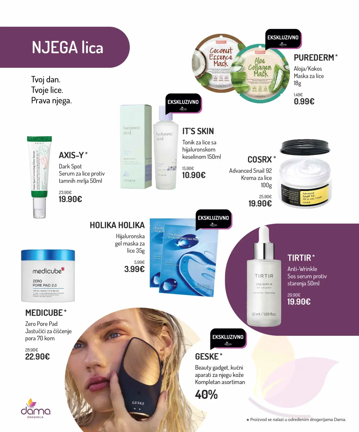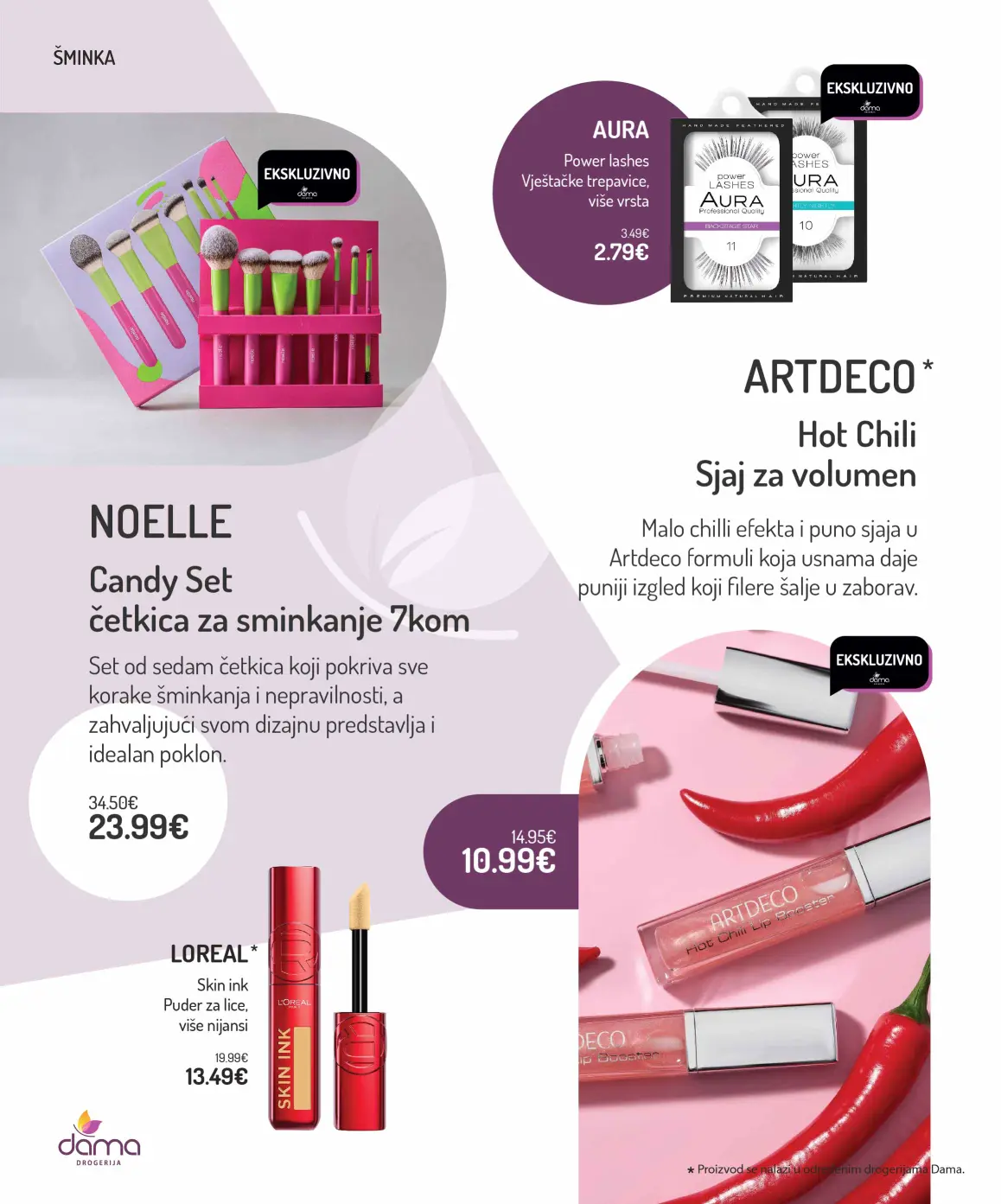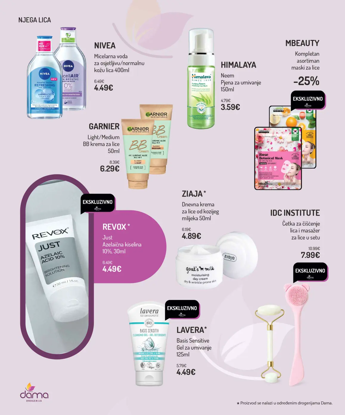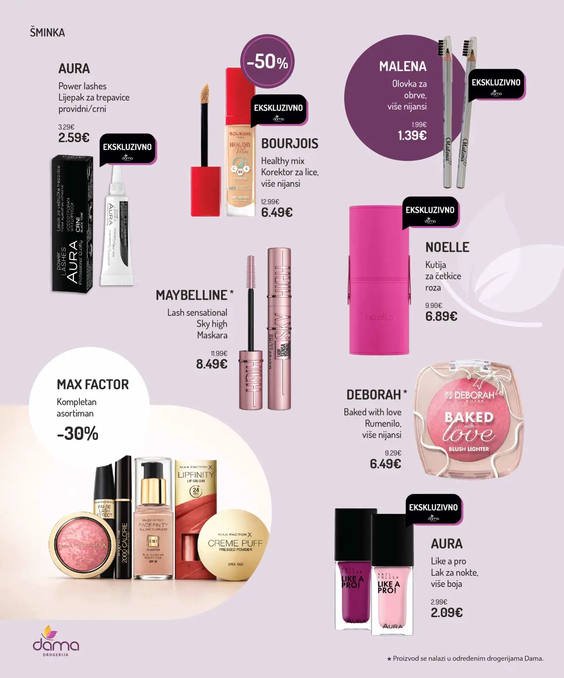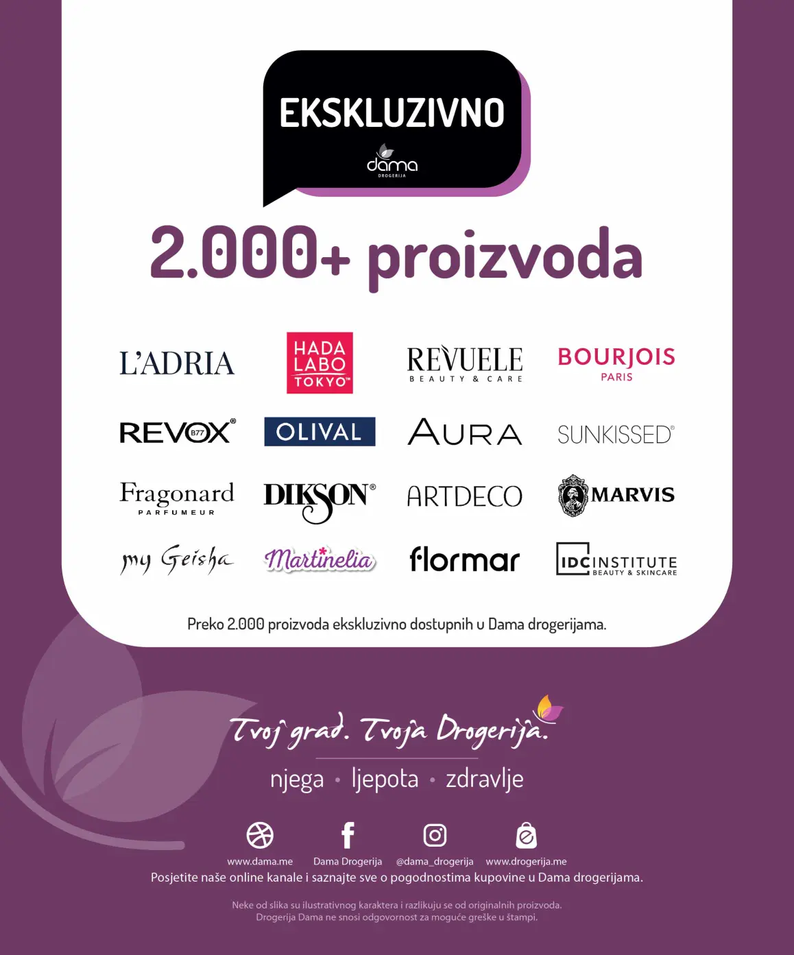 Katalog Dama drogerije donosi bogatu ponudu proizvoda za njegu i ljepotu, kao i za održavanje domaćinstva. U njemu se mogu pronaći najnoviji artikli iz svijeta kozmetike, parfema i lične higijene, što ga čini nezaobilaznim mjestom za sve one koji žele da prate trendove i brinu o sebi na pravi način. Posebna pažnja posvećena je izboru kvalitetnih i provjerenih brendova, zahvaljujući čemu kupci uvijek mogu računati na pouzdane proizvode.