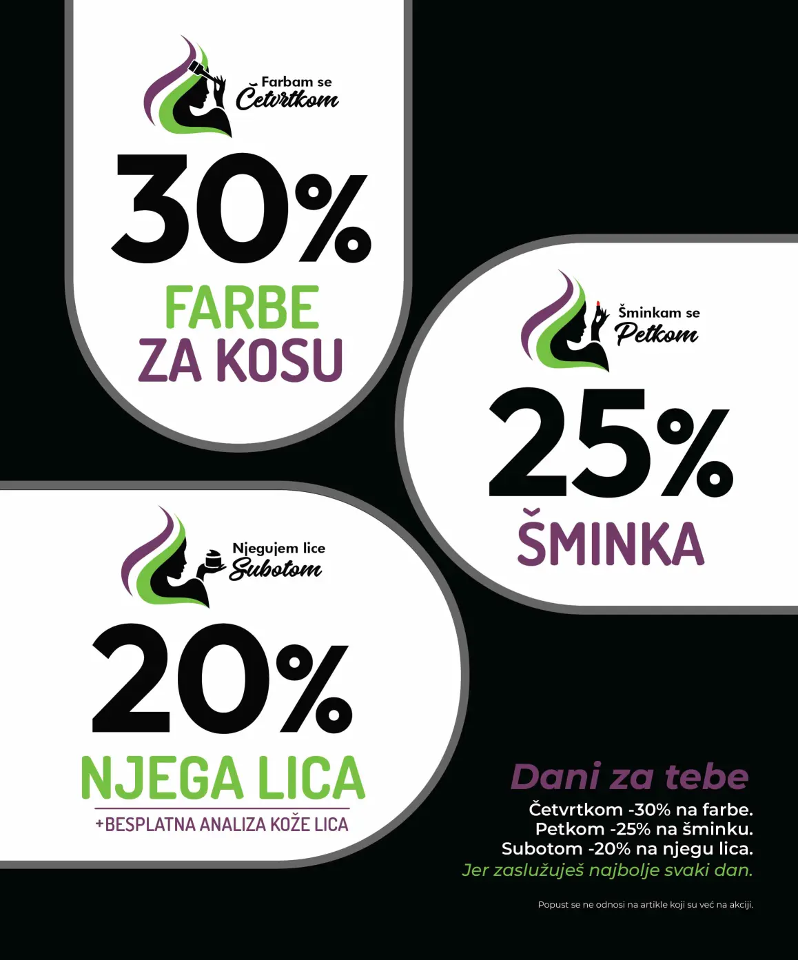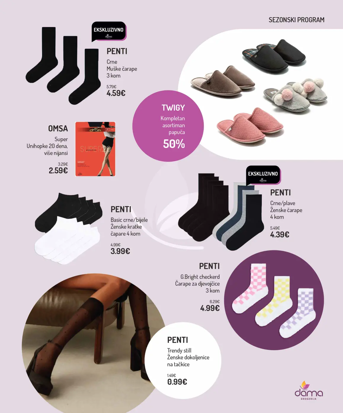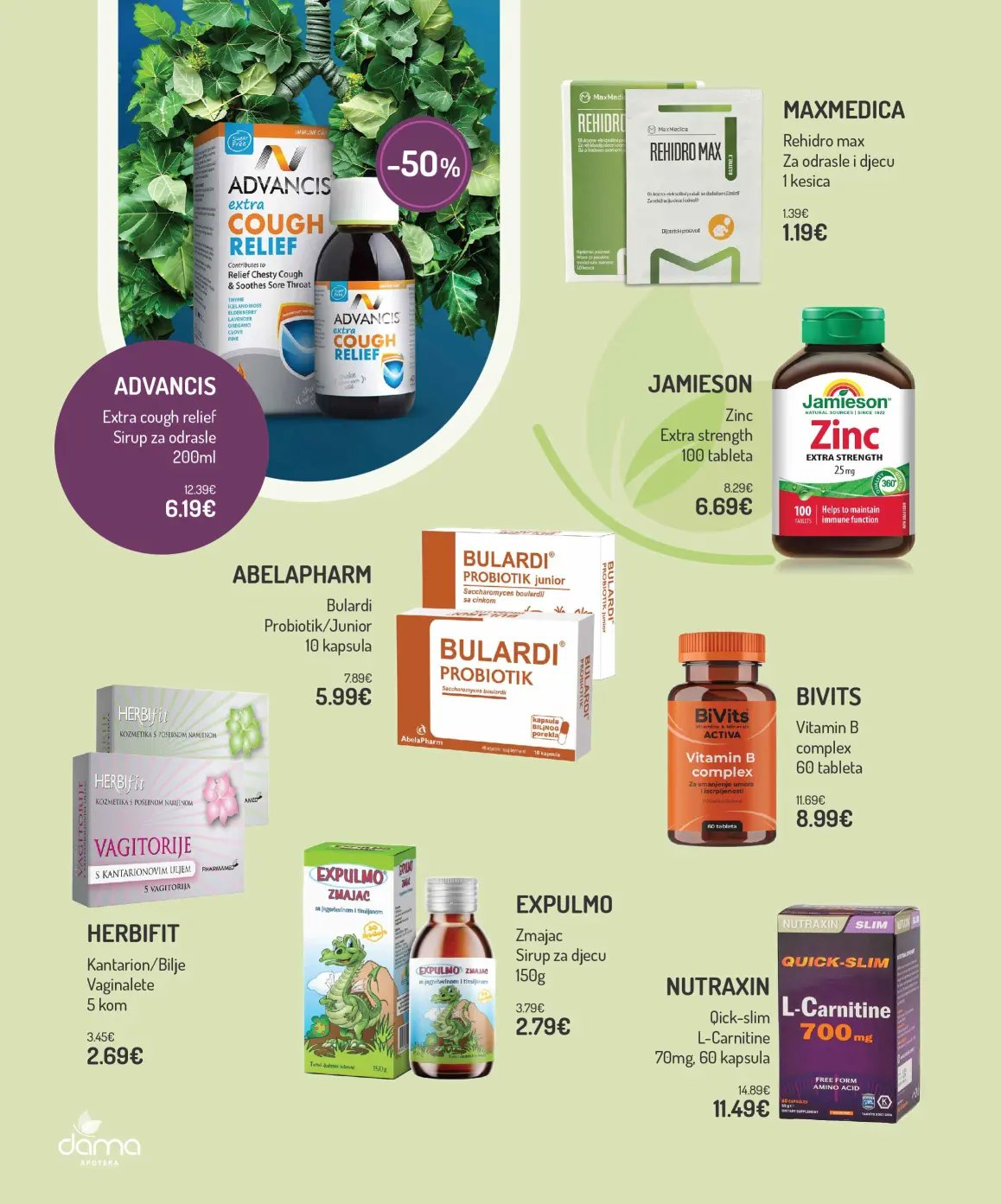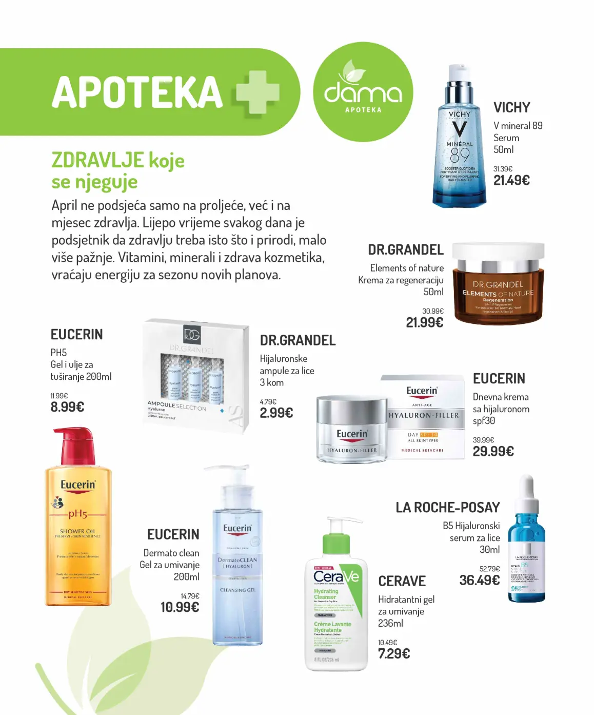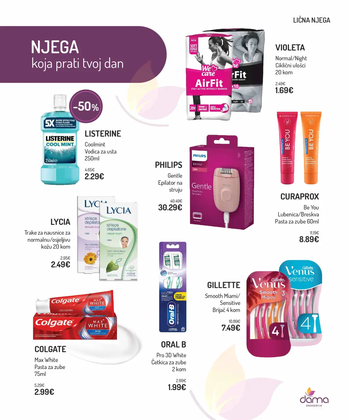 Katalog Dama drogerije donosi bogatu ponudu proizvoda za njegu i ljepotu, kao i za održavanje domaćinstva. U njemu se mogu pronaći najnoviji artikli iz svijeta kozmetike, parfema i lične higijene, što ga čini nezaobilaznim mjestom za sve one koji žele da prate trendove i brinu o sebi na pravi način. Posebna pažnja posvećena je izboru kvalitetnih i provjerenih brendova, zahvaljujući čemu kupci uvijek mogu računati na pouzdane proizvode.