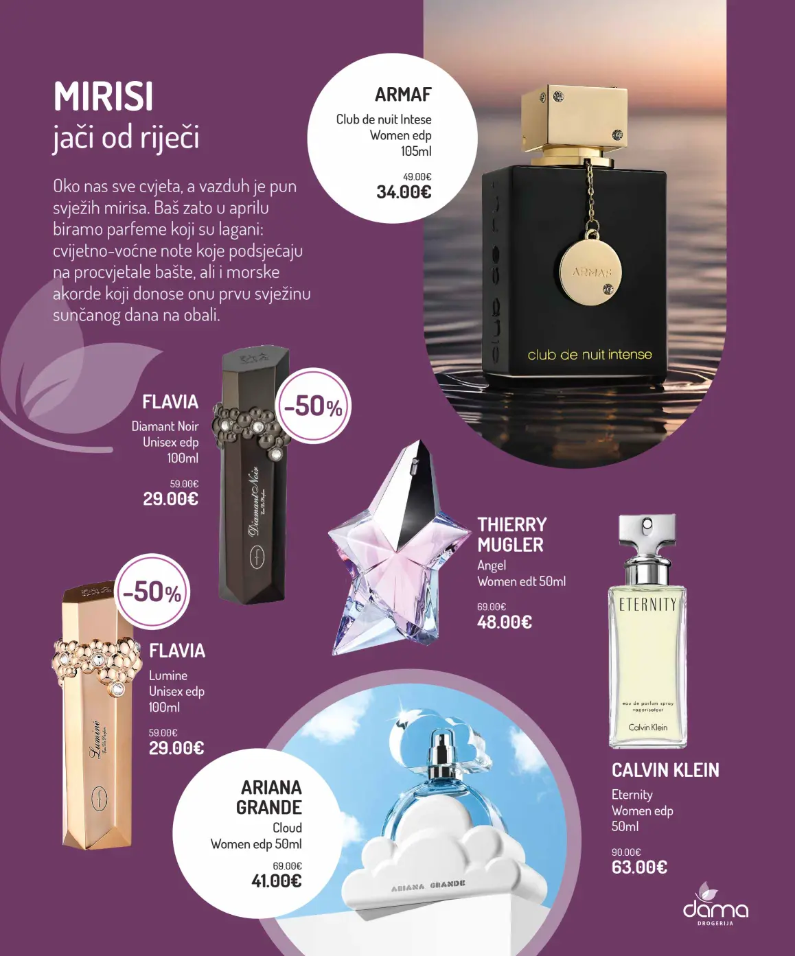 Katalog je osmišljen tako da kupcima pruži jasan pregled ponude i olakša odabir proizvoda, bilo da se radi o potrazi za omiljenim parfemom, kvalitetnim šamponom ili sredstvima za čišćenje. Zahvaljujući bogatoj i raznovrsnoj ponudi, Dama drogerija predstavlja idealno mjesto za kupovinu, kombinujući povoljne cijene, kvalitetne proizvode i preglednu organizaciju kataloga koja čini izbor jednostavnim i inspirativnim.