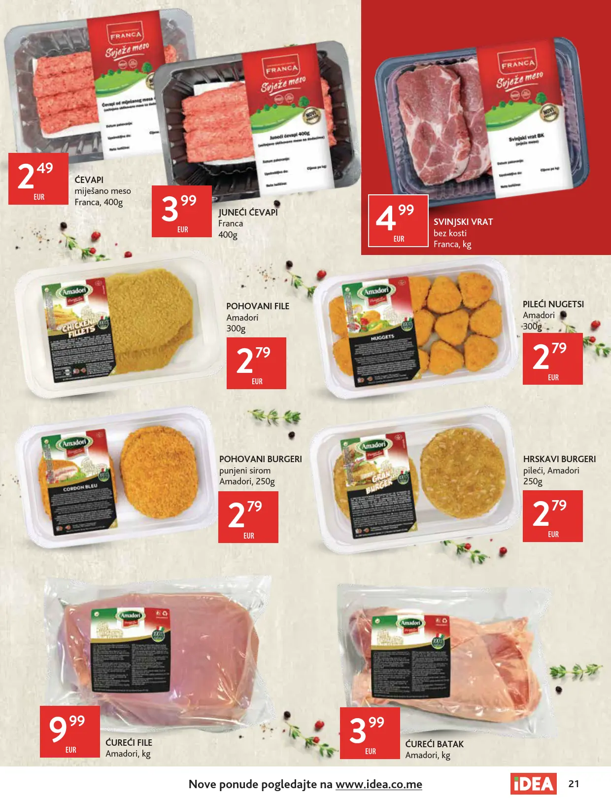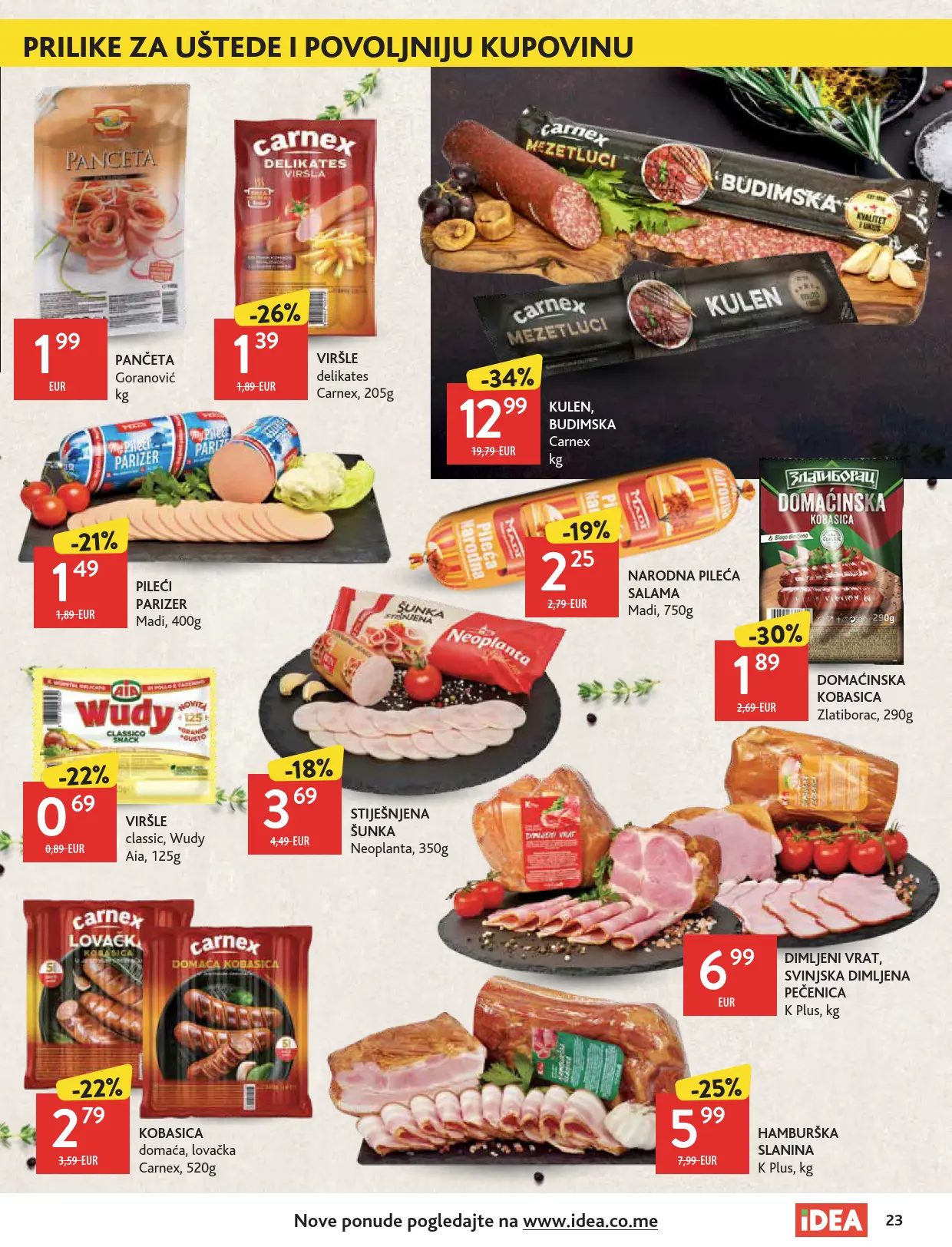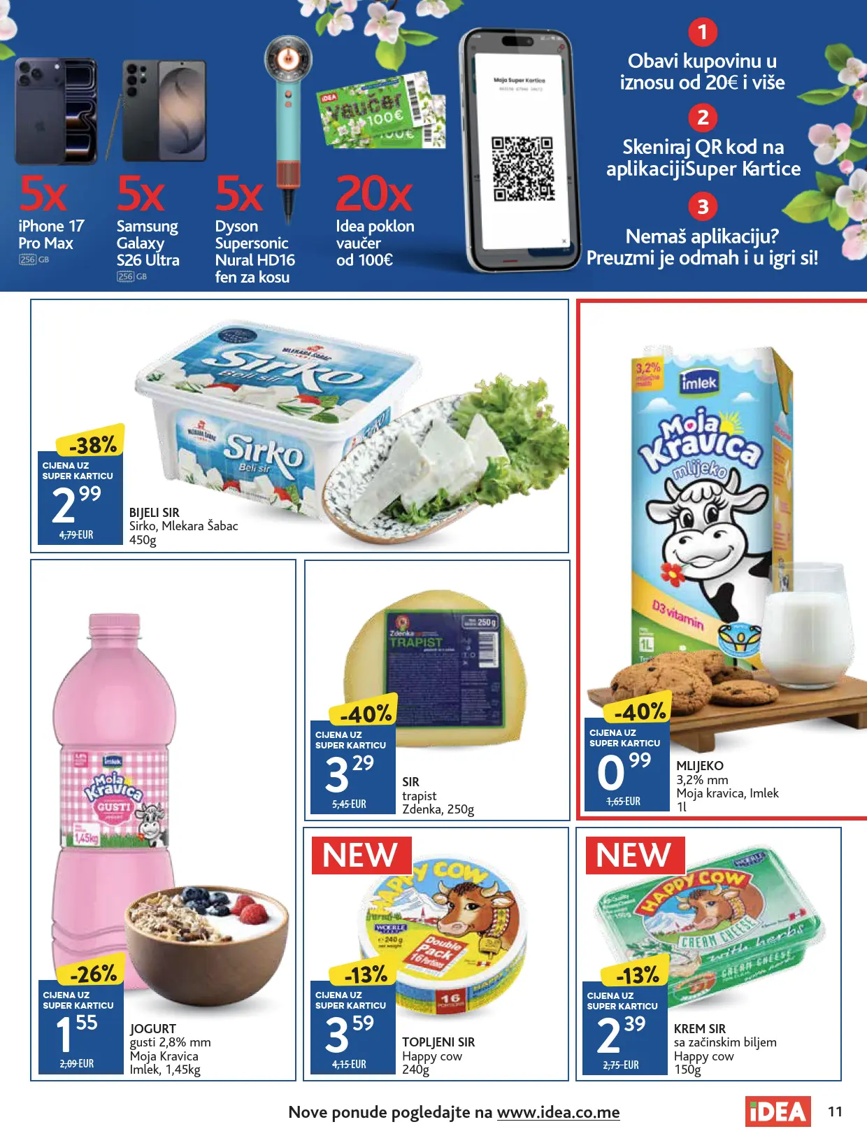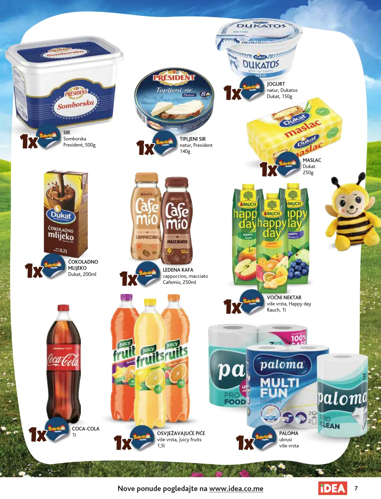 IDEA katalog donosi aktuelnu ponudu namirnica, kućnih potrepština i proizvoda za cijelu porodicu. U novom izdanju možete pronaći svježe voće i povrće, meso i mesne prerađevine, mliječne proizvode, kao i bogat izbor pekarskih artikala. Posebno mjesto zauzimaju domaći i regionalni brendovi, kao i raznovrsna rješenja za brzu i zdravu pripremu obroka.