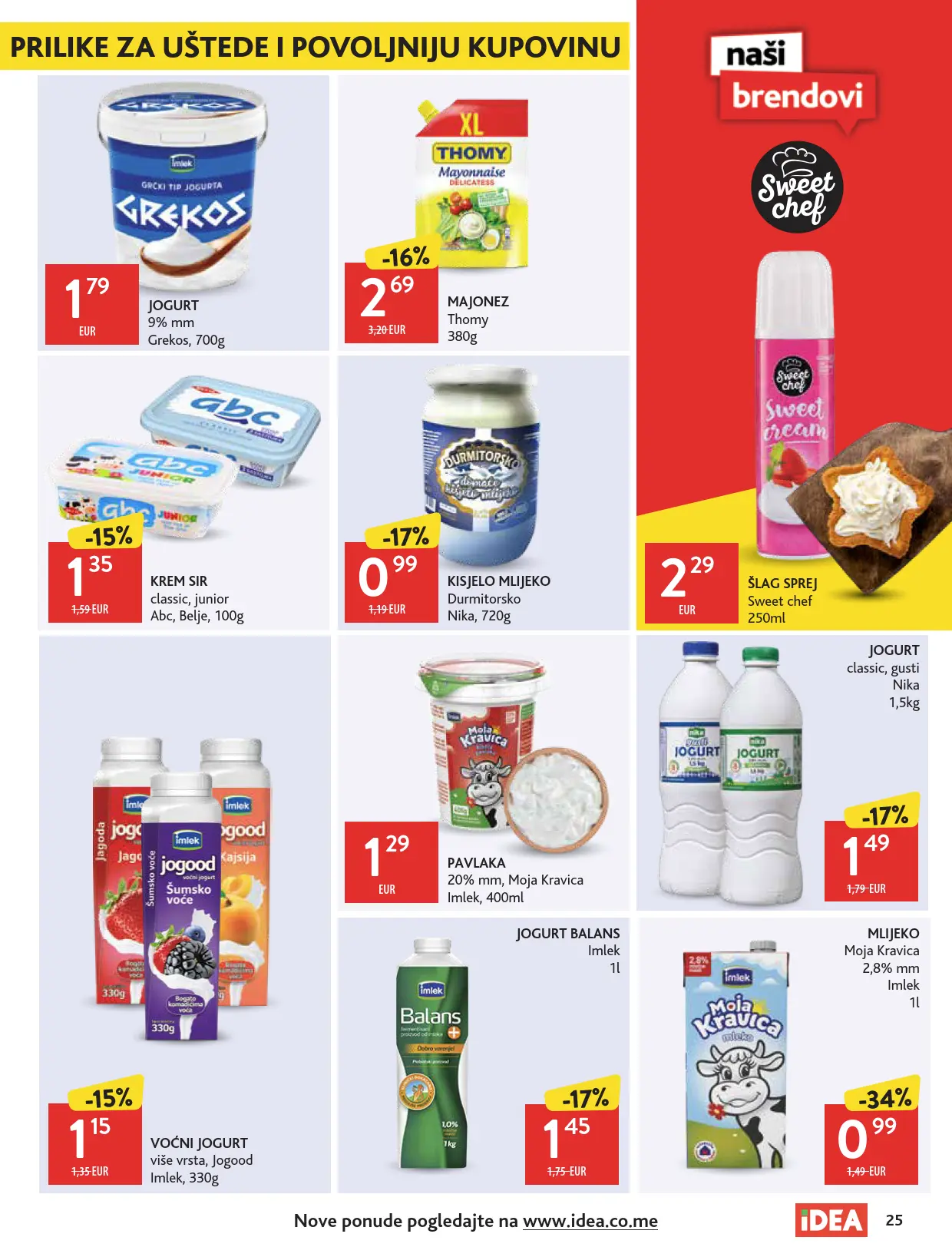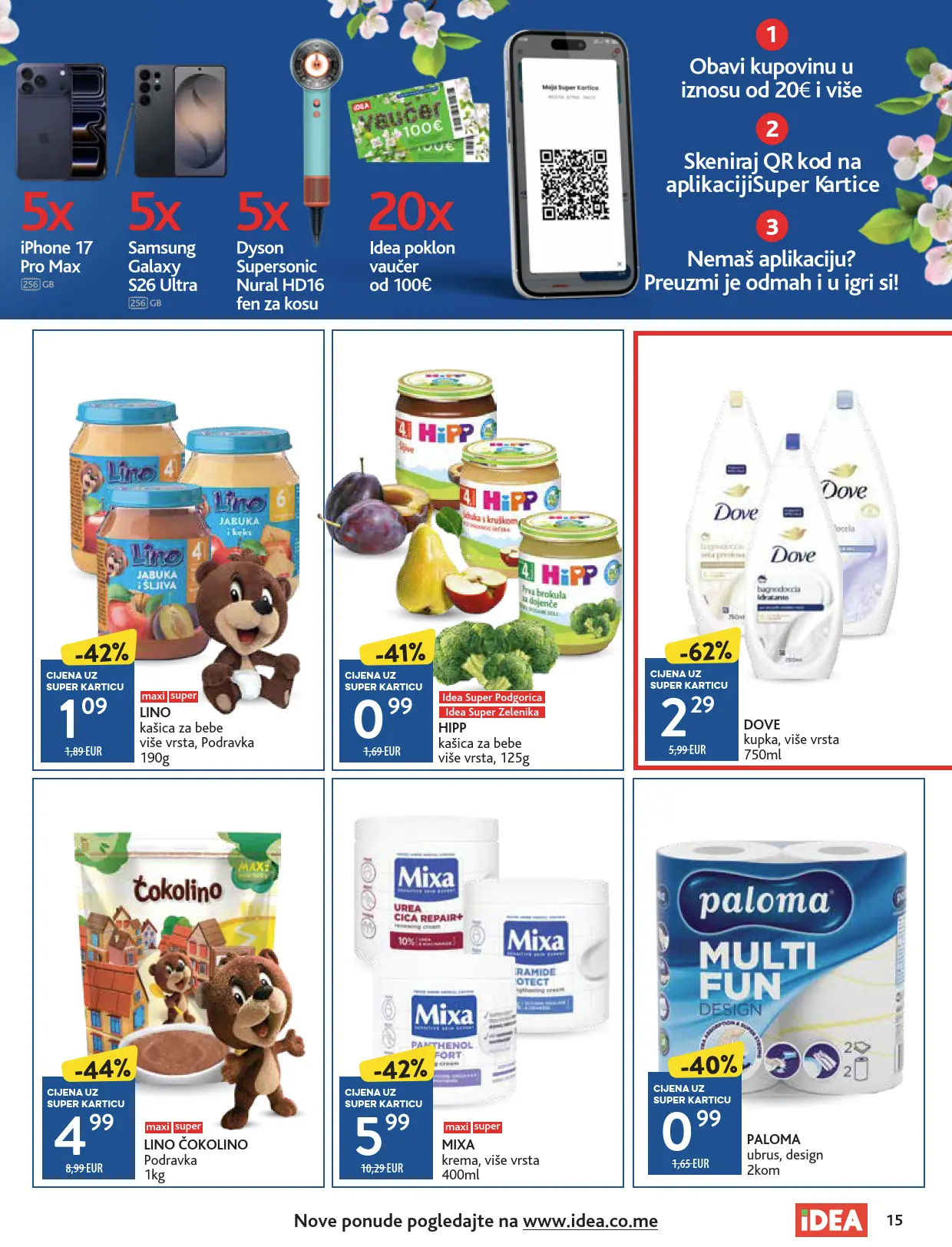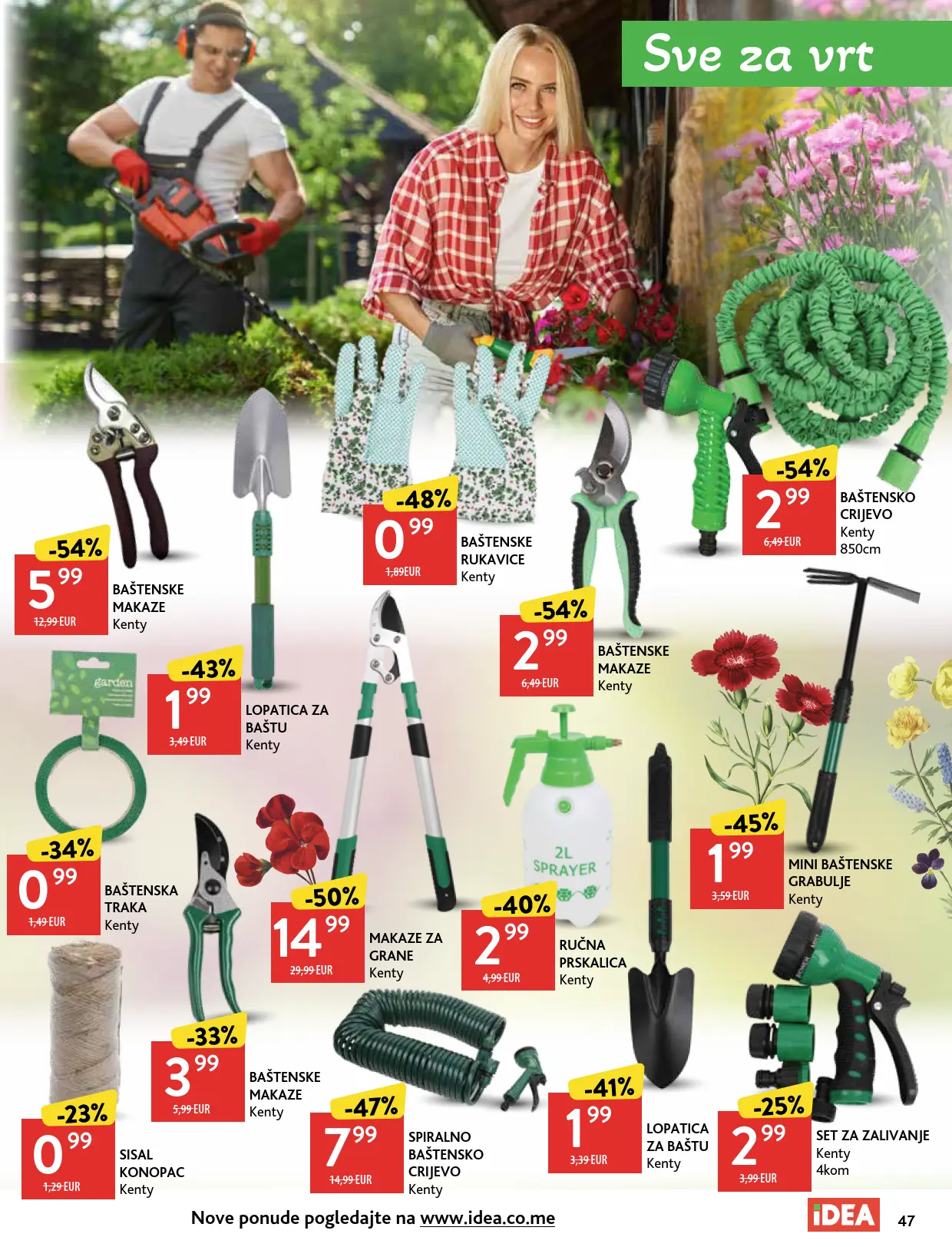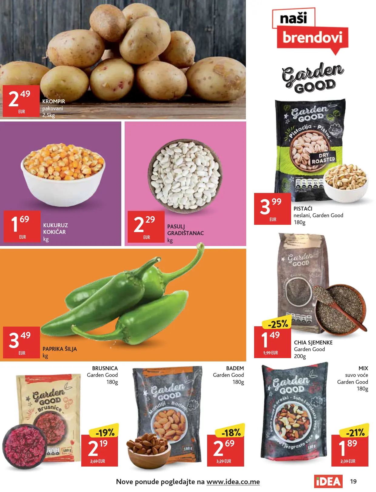 IDEA katalog donosi aktuelnu ponudu namirnica, kućnih potrepština i proizvoda za cijelu porodicu. U novom izdanju možete pronaći svježe voće i povrće, meso i mesne prerađevine, mliječne proizvode, kao i bogat izbor pekarskih artikala. Posebno mjesto zauzimaju domaći i regionalni brendovi, kao i raznovrsna rješenja za brzu i zdravu pripremu obroka.