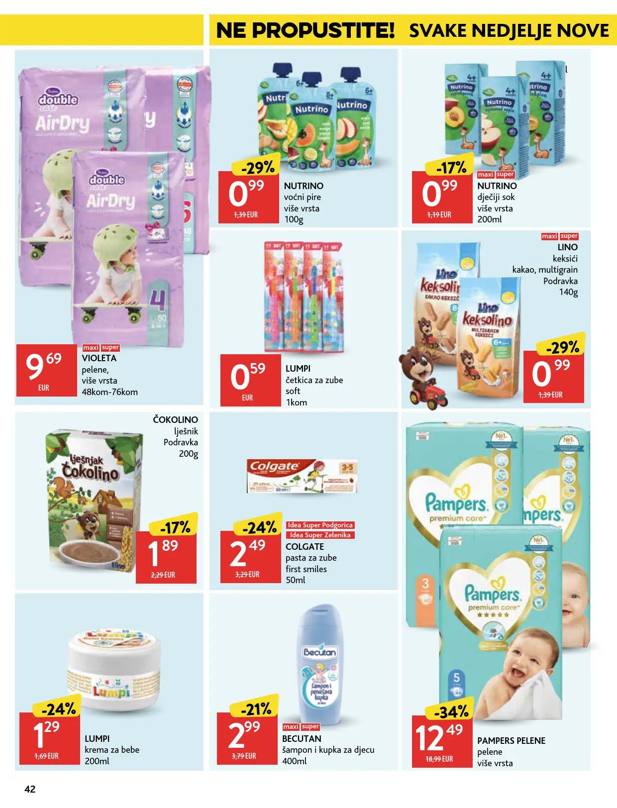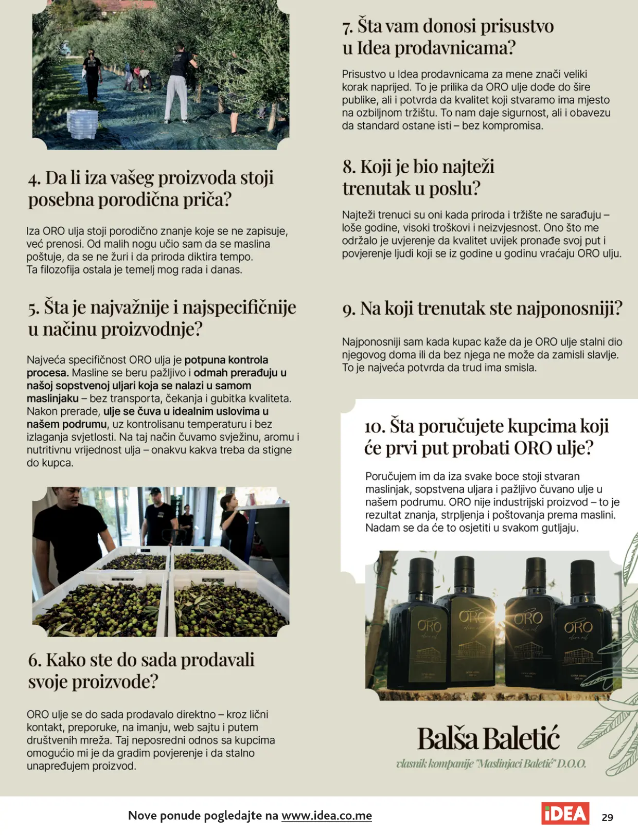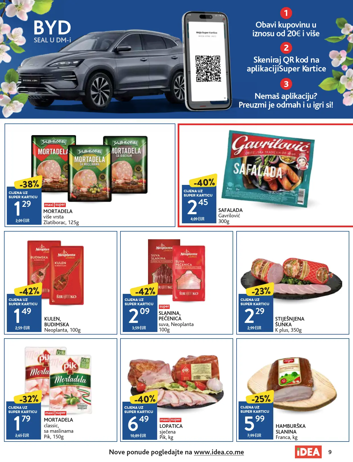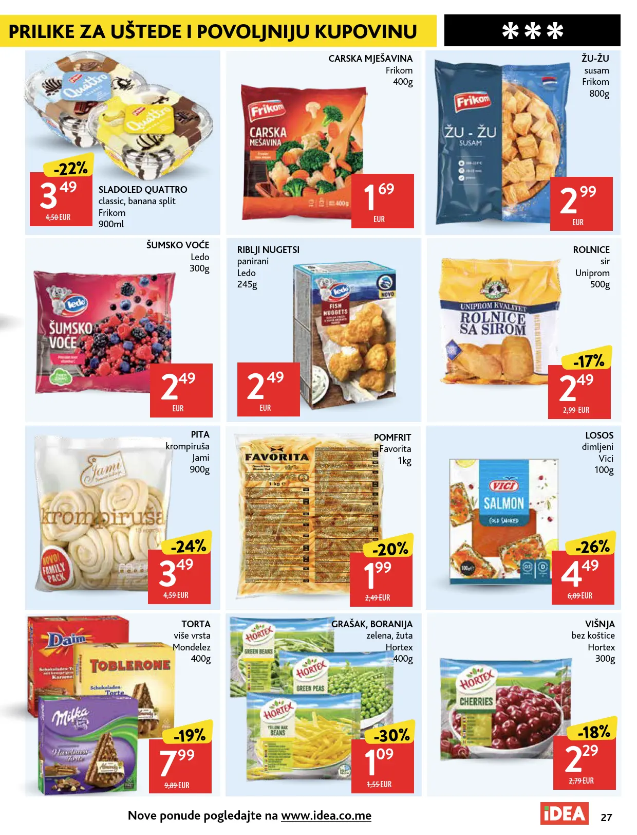 IDEA katalog donosi aktuelnu ponudu namirnica, kućnih potrepština i proizvoda za cijelu porodicu. U novom izdanju možete pronaći svježe voće i povrće, meso i mesne prerađevine, mliječne proizvode, kao i bogat izbor pekarskih artikala. Posebno mjesto zauzimaju domaći i regionalni brendovi, kao i raznovrsna rješenja za brzu i zdravu pripremu obroka.