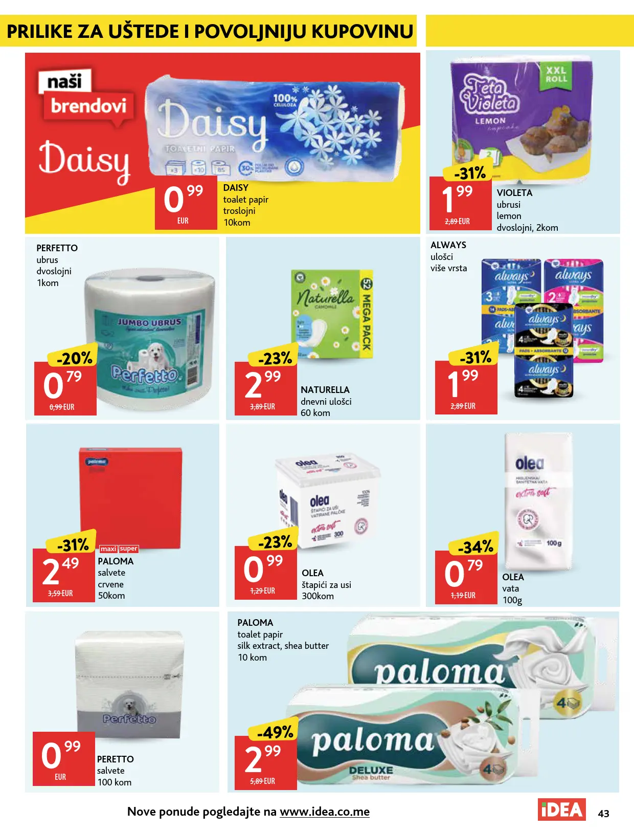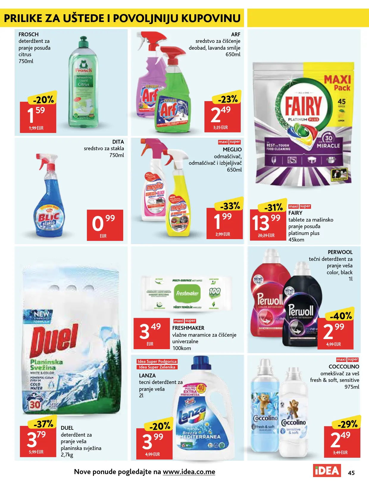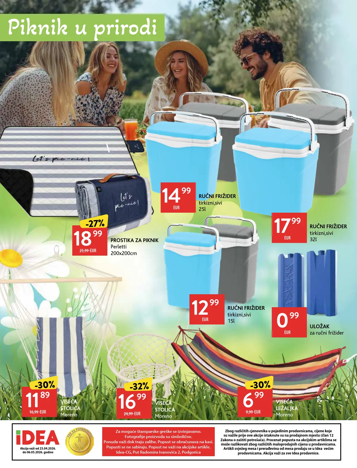 IDEA redovno priprema akcijske cijene i sezonske ponude, pa je katalog idealan vodič za planiranje kupovine. Bez obzira da li tražite osnovne namirnice, artikle za svakodnevnu upotrebu ili nove proizvode na tržištu, IDEA katalog pruža pregled svega što vam je potrebno na jednom mjestu.