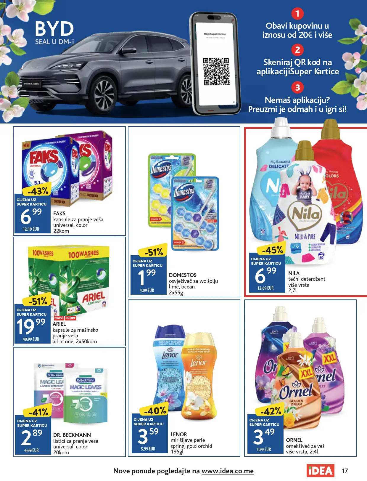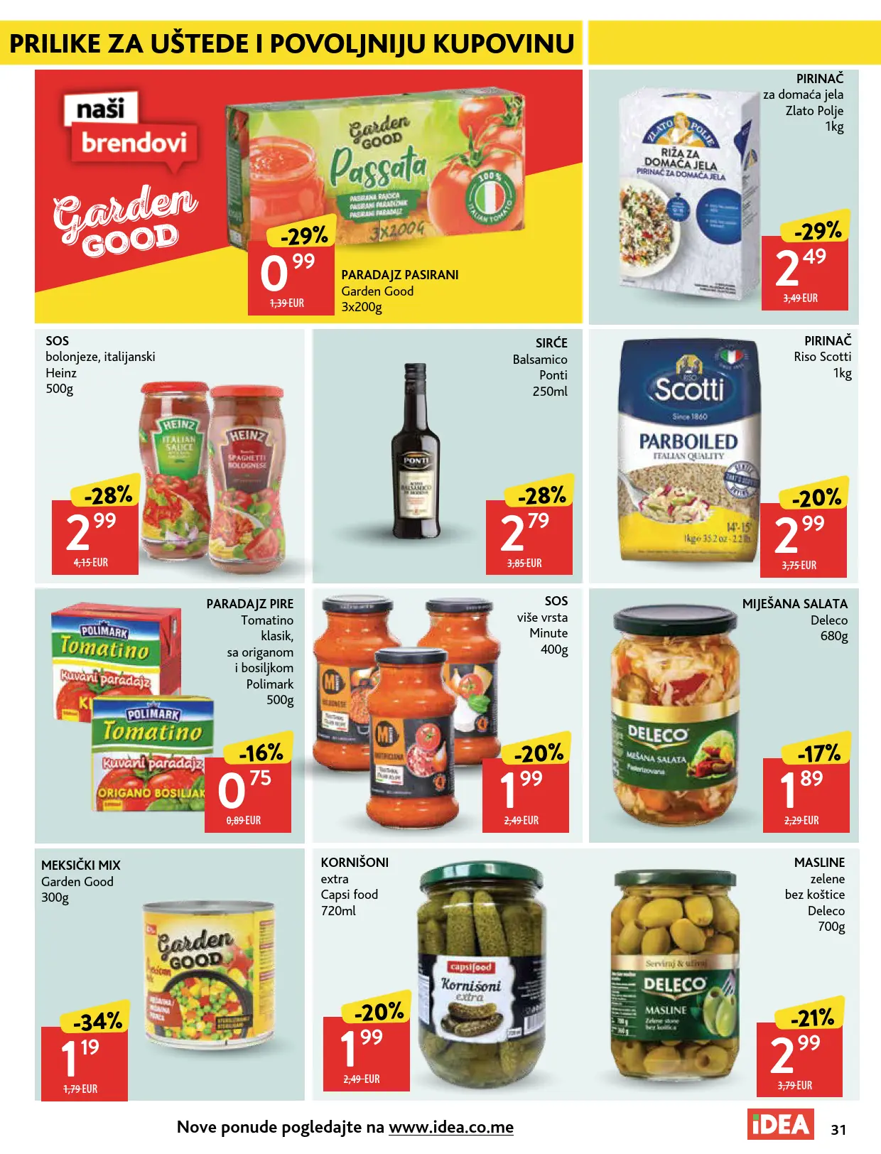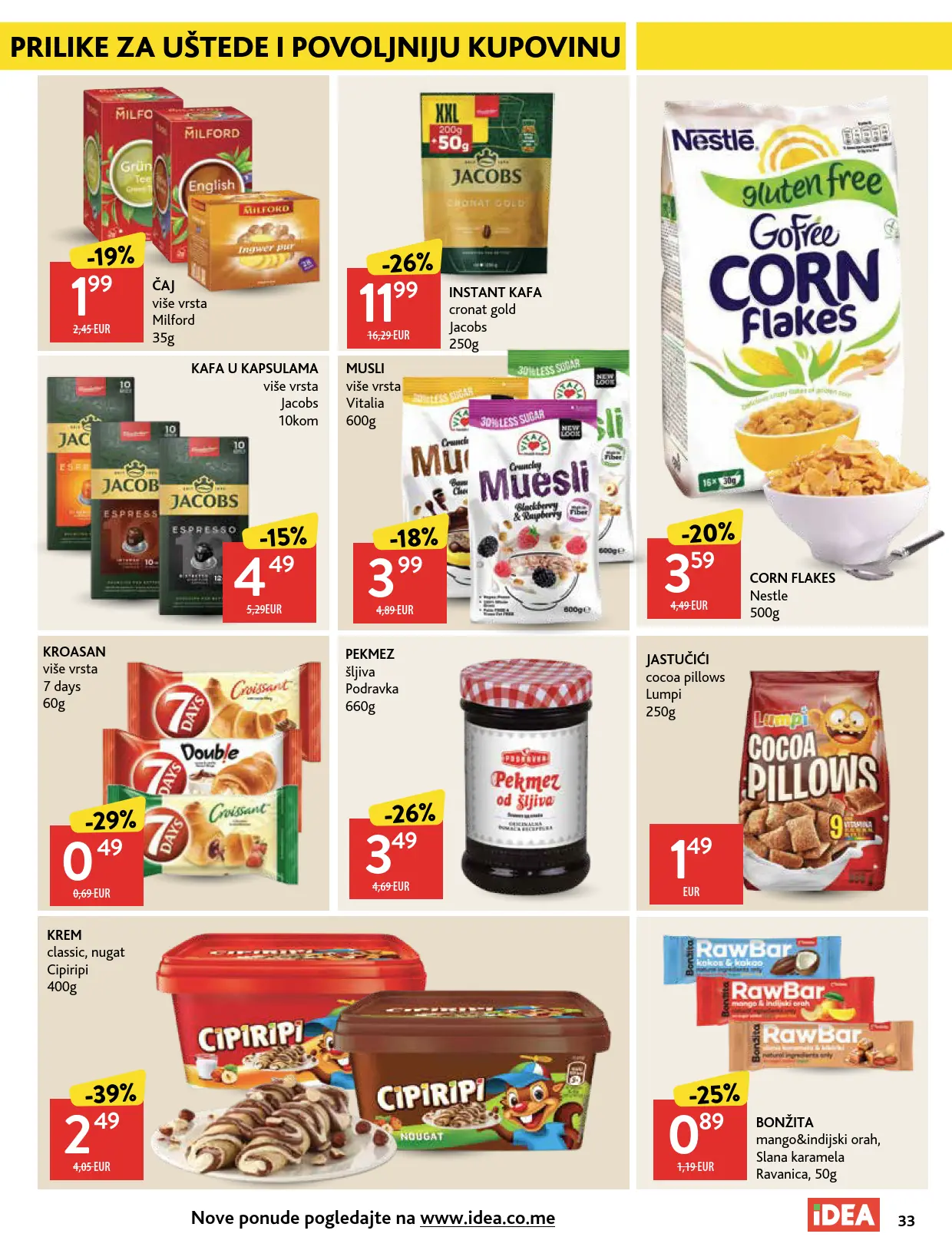 IDEA redovno priprema akcijske cijene i sezonske ponude, pa je katalog idealan vodič za planiranje kupovine. Bez obzira da li tražite osnovne namirnice, artikle za svakodnevnu upotrebu ili nove proizvode na tržištu, IDEA katalog pruža pregled svega što vam je potrebno na jednom mjestu.