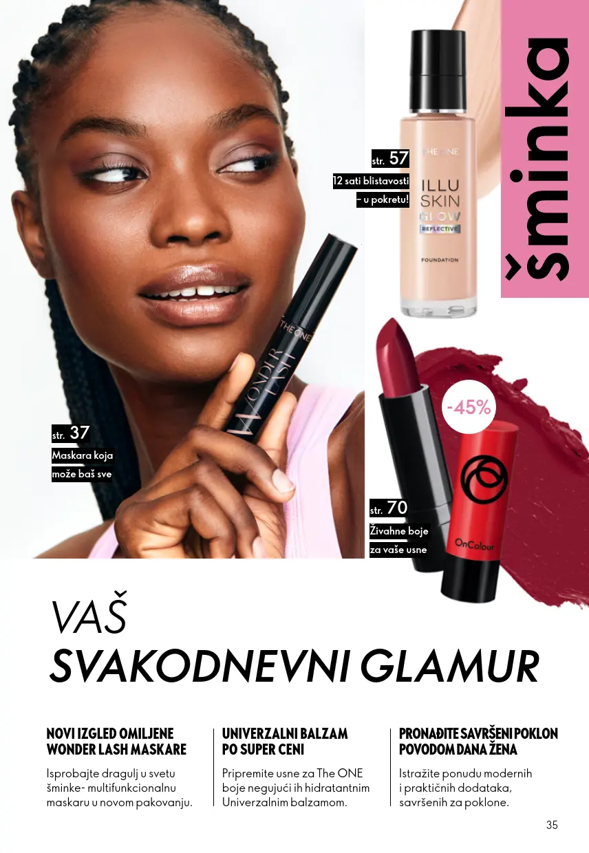 Katalog sadrži bogat izbor linija poznatih po inovativnim formulama i pažljivo biranim sastojcima. Oriflame spaja nauku i prirodu, nudeći proizvode koji njeguju kožu i ističu prirodnu ljepotu.
