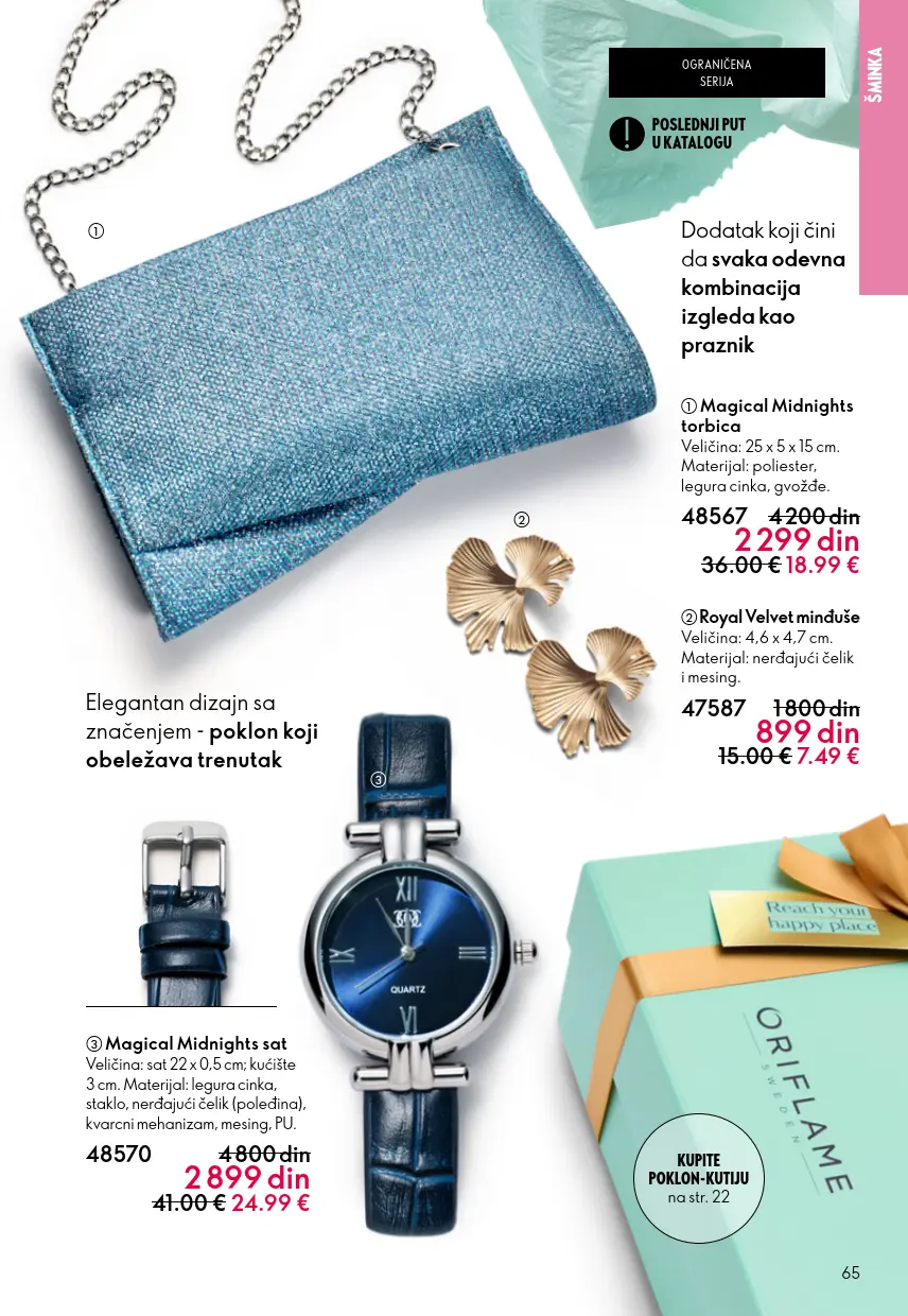 Oriflame katalog donosi najnovije trendove u svijetu ljepote, njege i wellnessa. U novom izdanju predstavljeni su proizvodi inspirisani prirodom i švedskim načinom života – od visokokvalitetne kozmetike i parfema do dodataka ishrani i proizvoda za njegu tijela, lica i kose.